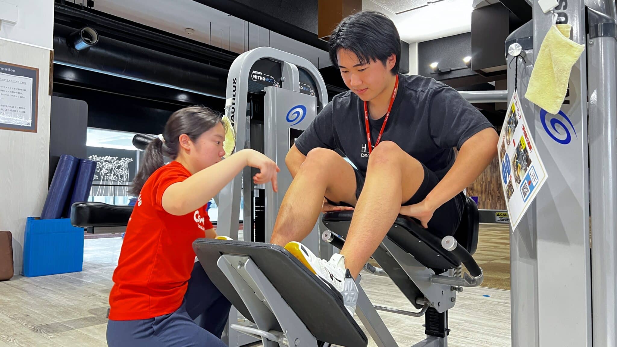 本日1回目の研修内容は、全てのベースとなる「基礎機能解剖」と「マシントレーニングのフォームチェック方法」のレクチャーでした。伊藤くんは基礎的機能解剖の知識もしっかりしており、こちらからの質問もスムーズに返答出来ていたので、先輩社員の横川さんの現場で課題になっていることなども共有しながら、進めていきました。